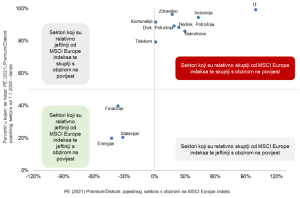 S druge strane, sektori telekoma, IT-a, industrije i diskrecijske potrošnje su relativno najskuplji sektori na oba tržišta.